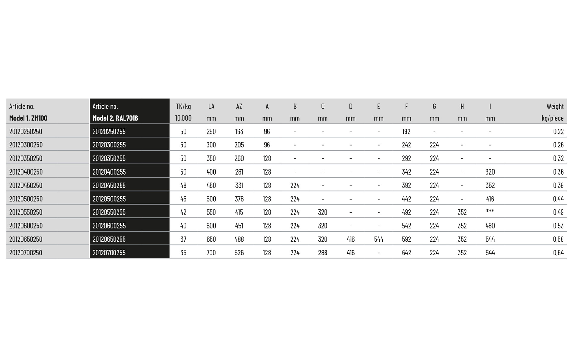 Cross section: 9.5 x 35.2 mm | Length: 250 up to 700 mm