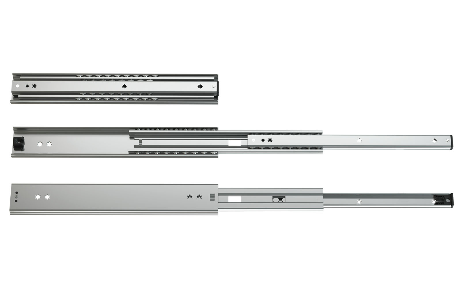 Telescopic slides series 037, hot-dip galvanized steel, width 16 mm, over-extension, up to 100 kg at 100.000 cycles